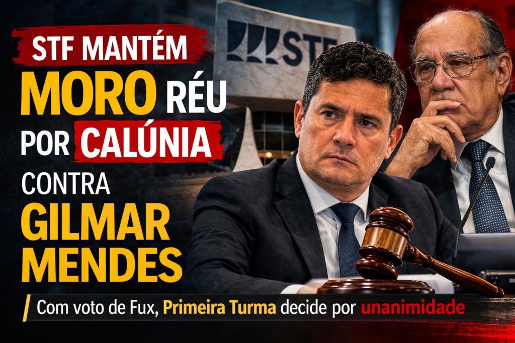 A Primeira Turma do Supremo Tribunal Federal (STF) decidiu, por unanimidade, rejeitar o recurso apresentado pelo senador Sergio Moro (União Brasil-PR) e manteve a decisão que o tornou réu por calúnia contra o ministro Gilmar Mendes. O voto do ministro Luiz Fux, proferido nesta sexta-feira, 13, consolidou o entendimento do colegiado e garantiu o prosseguimento