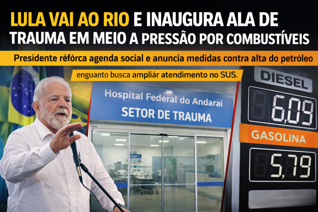 Presidente inaugura setor de trauma e clínica médica no Hospital Federal do Andaraí, enquanto governo tenta conter efeitos da alta do petróleo e acelerar obras de infraestrutura em outras frentes O presidente Luiz Inácio Lula da Silva cumpriu nesta sexta-feira, 13 de março de 2026, agenda no Rio de Janeiro voltada à área da saúde