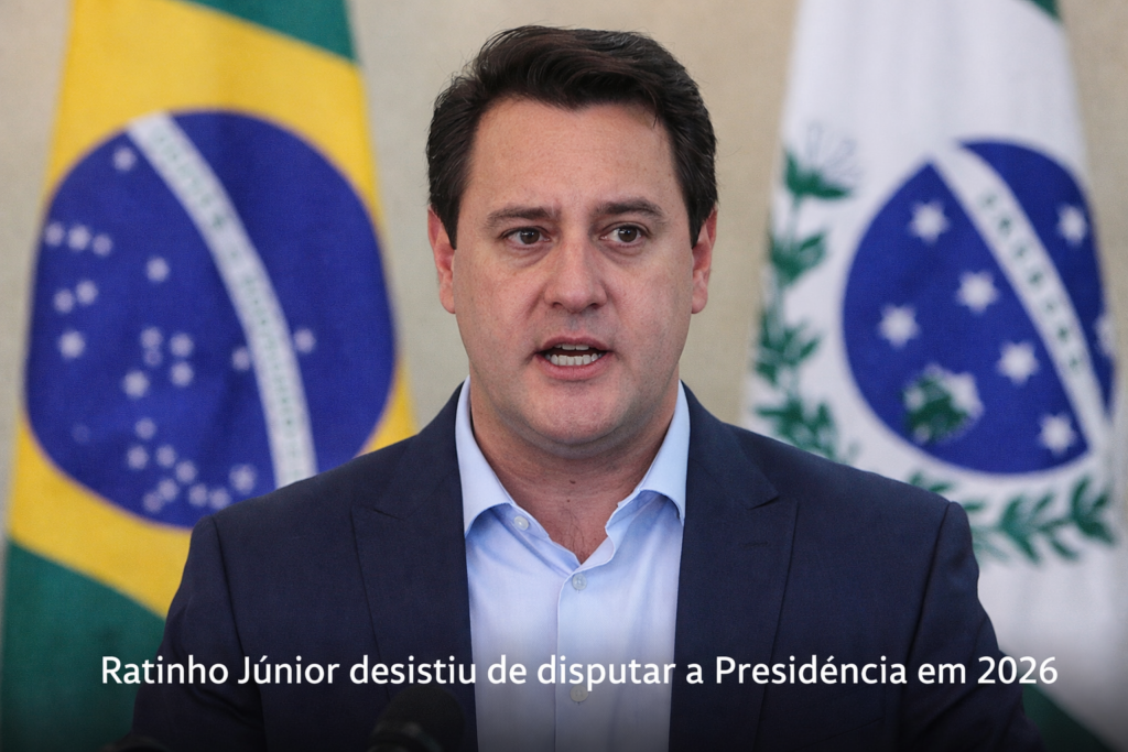 A desistência já havia sido formalizada pelo PSD no início da semana. Em nota divulgada na segunda-feira (23), o partido informou que Ratinho Júnior decidiu concluir seu mandato no Paraná até dezembro deste ano e, por isso, deixaria de participar da discussão interna sobre a candidatura presidencial da legenda. O PSD também reafirmou que manterá o projeto de lançar nome próprio ao Palácio do Planalto.