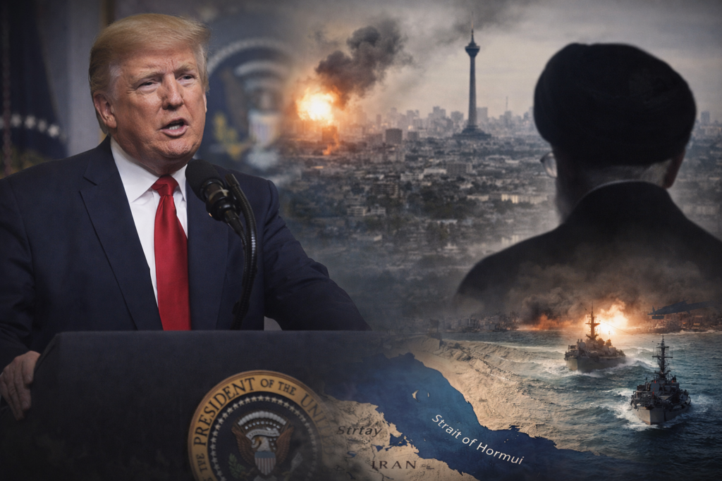 Encorajamos veementemente outras nações cujas economias dependem muito mais dessa passagem do que a nossa. Obtemos menos de 1% do nosso petróleo pelo Estreito”, disse Trump, citando Japão, China, países europeus e Coreia do Sul como dependentes estratégicos da rota marítima.